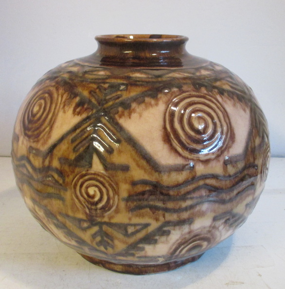 Big size art deco vase with spectular geometric design influenced by Cubism & Japanese aestetic Sevres France design of Maurice Gensoli marked & signed 1927 very good condition some small production defaults big size : 25 cm high/ diameter 26 cm !