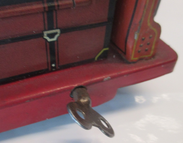 antique wind up tin toy luggage porter by Hammerer & Kuhlwein ca 1930, Germany needs a complete restoration : some rust / porter is missing a little signal one wheel not original wind up system is blocked but it's still a good rare item !