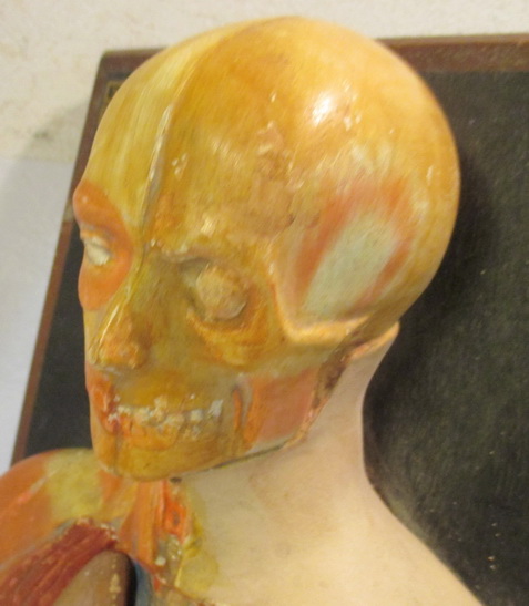 RARE & VERY HARD TO FIND : extremely small anatomic model of the human body antique ecorché plaster/ gipsum mounted on a wooden plate this is a real antique and special model 19th century ! ca 1850 edited by N. Boubée Paris very detailled but used condition intestines are very used ! a lot of chips / paint loss a lot of repaints some missing pieces ONLY 52 cm x 30 cm/ depth 10 cm / depth 10 cm225 info : dirk.balduyck@telenet.be