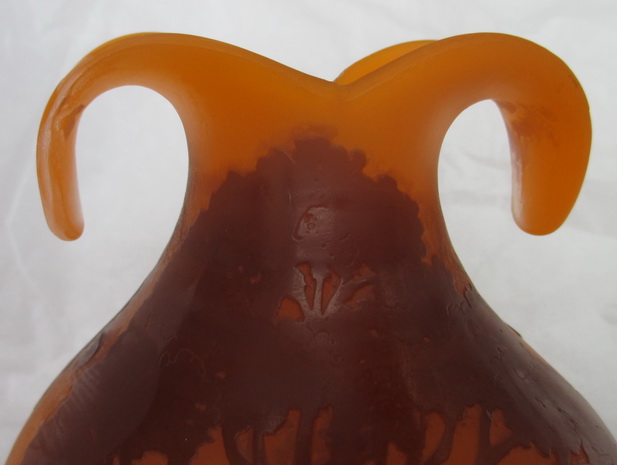 georgeous acid etched glass vase three colours/ exceptional model with a beautiful detailled botanical design with trees and a little church signed Delatte, Nancy ca 1930 14 cm high/ 11 cm xide very good condition 650€ info : dirk.balduyck@telenet.be