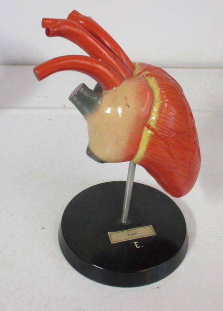 antique anatomical models of different hearts dog/ bird/ human being/ 2 x fish edited by Somso these are some of a collection of seven different hearts of animals syntetic material, the well-known Somso plasstic on a bakelite base ca 1930 very good condition
