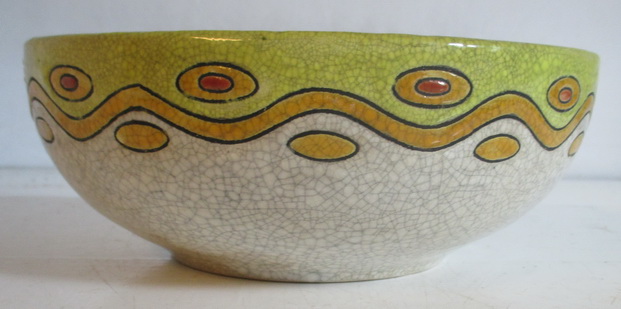 special and rare Boch freres Keramis fruit dish not so easy to find ! beautiful geometric/ cubistic art deco design by Charles Catteau decornr D753 ca 1930 acceptable condition BUT some brown spots due to the use ! height 7 cm/ diameter 18 cm 275€ info : dirk.balduyck@telenet.be