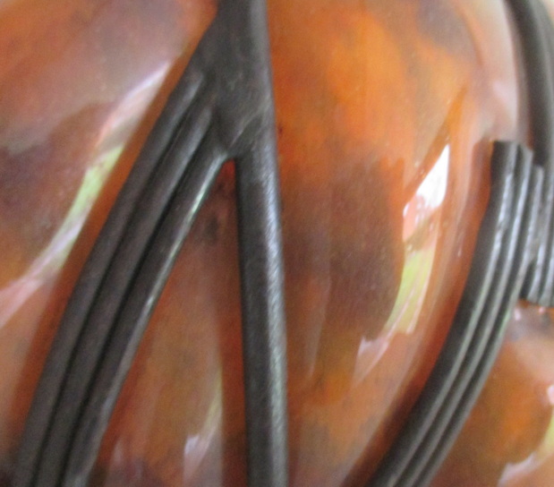 gorgeous art deco vase pate de verre, blown into metal/ wrought iron frame very special and very decorative Daum or Lorrain not signed, or signature is wiped out due to the cleaning during the years perfect condition height 21 cm/ greatest diameter 21 cm