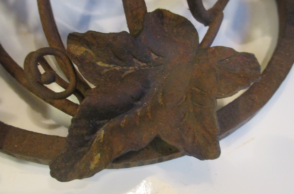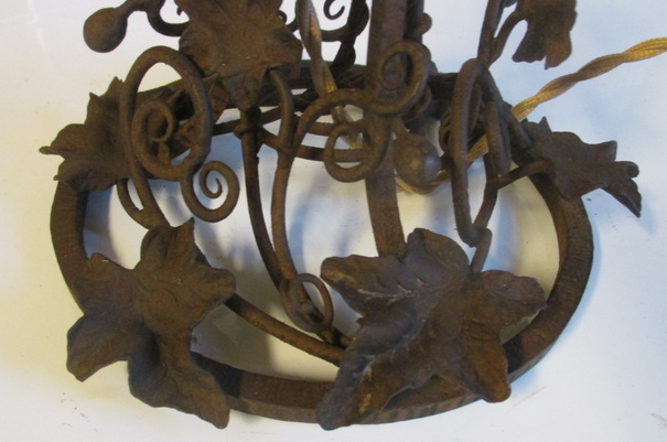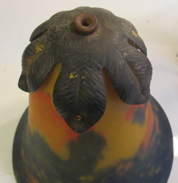 gorgeous French art deco table lamp pate de verre shade signed Noverdy, not signed beautiful wrought iron fixture with grapes and leaves ca 1930 height 45 cm / shade 16 cm ! very good condition, but rusty !! electricity renewed !! and this is a kind of " mariage "