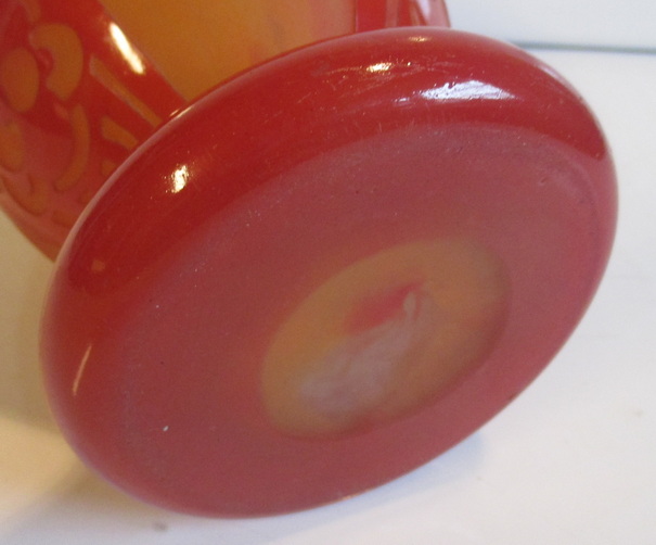 gorgeous original acid etched cameo vase by Charles Schneider signed Le Verre Francais & signed Charder decor Rosaces red glass overlaid with orange acid-etched pattern ca 1924-1927 extremely good condition one miniscul scratch, very diffult to see ! small production default / éclat on the Charder signature height 30 cm decor pictured in the catalogue Charles Schneider by MC Joulin/ G. Maier