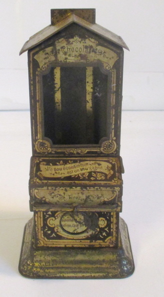 antique tin toy mechanical coin chocolat automaton