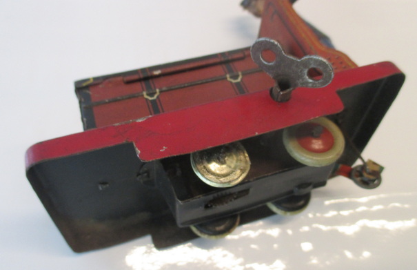 antique wind up tin toy luggage porter by Hammerer & Kuhlwein ca 1930, Germany needs a complete restoration : some rust / porter is missing a little signal one wheel not original wind up system is blocked but it's still a good rare item !