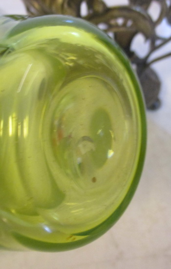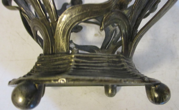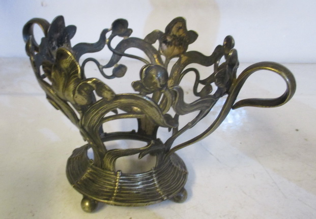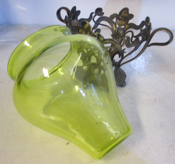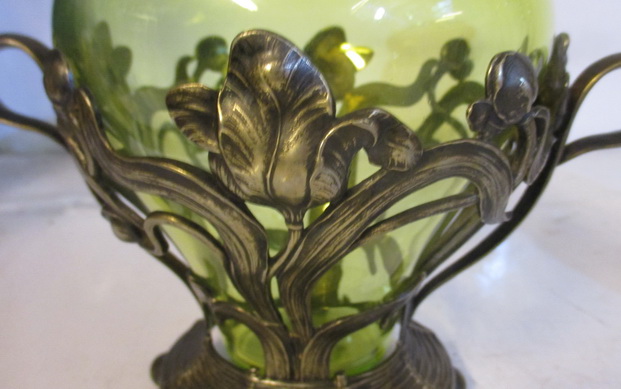 gorgeous antique art nouveau bowl crystall green glass beautiful art nouveau silver plated frame decorated with flowers marked WMFB Metallwarenfabrik Straub & Schwartze ca 1910 very good condition height 18 cm/ total width 21 cm